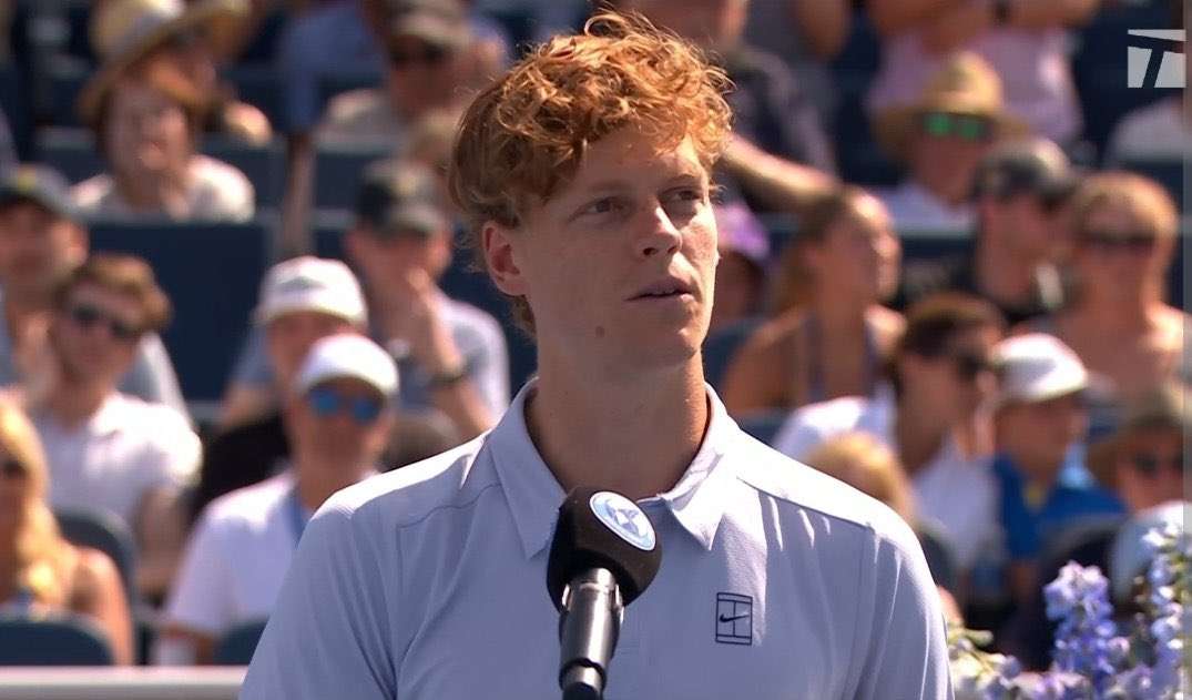 “Се обидов да излезам на теренот и барем да одиграм мал меч, но сепак не можев да издржам повеќе. Многу ми е жал за сите вас. Знам дека некои од вас дојдовте тука да нè гледате во понеделник, можеби кога имате работа или други обврски, па навистина ми е жал. Секако, честитки и за Карлос. Уште една титула. Не е начинот на кој сакаше да победиш, но неверојатно е каква сезона имаш и сè што правиш. Ти и целиот твој тим работите неверојатно. Само продолжете така. Ви посакувам успех и на УС Опен и во остатокот од сезоната”, додаде светскиот тенисер број еден, Јаник Синер.