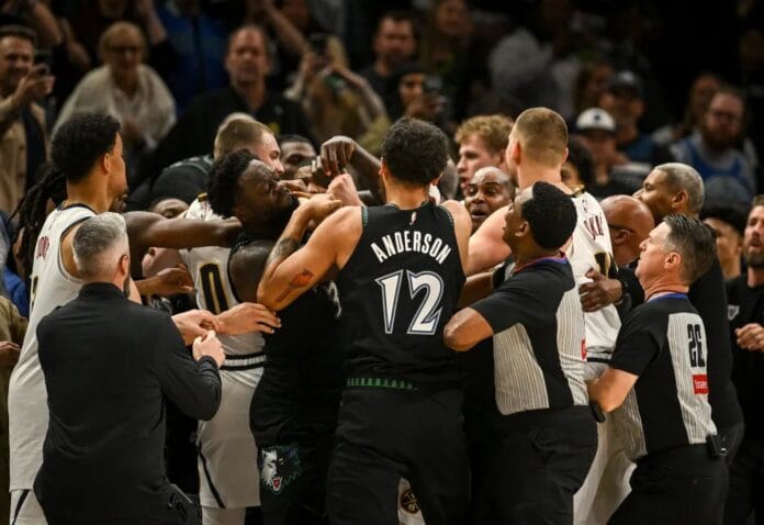 НБА лигата експресно реагираше на тензичниот крај на четвртиот натпревар помеѓу Денвер Нагетс и Минесота Тимбервулвс. Иако не беа досудени суспензии кои би влијаеле на составот на екипите за клучниот петти меч, ѕвездите на двата тима ќе мора да платат солени парични казни поради нивната улога во инцидентот на самиот крај на средбата.