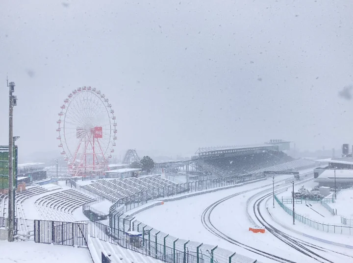 Јапонската гран-при патека е позната по својата специфична „осумка“. Кога снегот ќе ја покрие Сузука, познатото панорамско тркало во позадината и белиот асфалт создаваат надреална глетка. Иако Јапонија има блага клима во некои делови, Сузука често знае да побели во јануари.