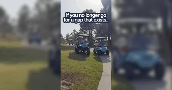Што прави четирикратен светски шампион кога ќе се најде зад поспоро возило? Истото што го прави и на патеката, претекнува. Без разлика дали се работи за болид од 1000 коњски сили или количка за голф.