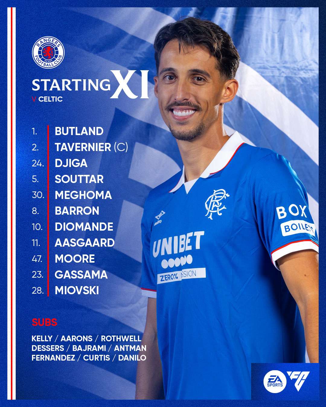 Миовски веднаш во стартниот тим на Ренџерс во вечното дерби против Селтик
