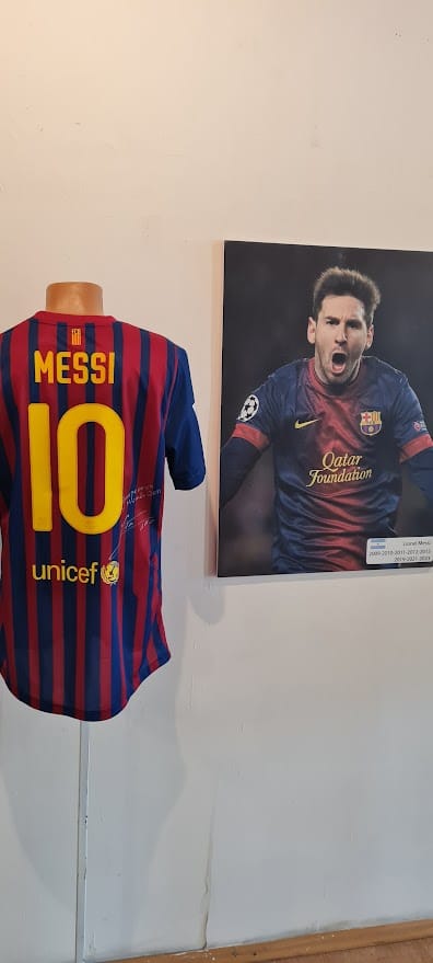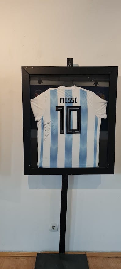 Она што нè остави без здив беше делот посветен на меѓународните легенди. Ексклузивно за Скопје, во витрините стоеше дресот на Лионел Меси од финалето во Катар, заедно со една од официјалните топки од тој историски меч.