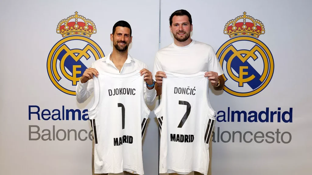 Кога играат Реал Мадрид и Црвена Звезда, возбудата на теренот е загарантирана, но вечерашниот дуел во 38-то коло на Евролигата во „Визинк Центар“ доби посебна тежина поради гостите во првиот ред. Две од најголемите спортски икони на денешницата, Новак Ѓоковиќ и Лука Дончиќ, беа главните ѕвезди покрај аут-линијата.